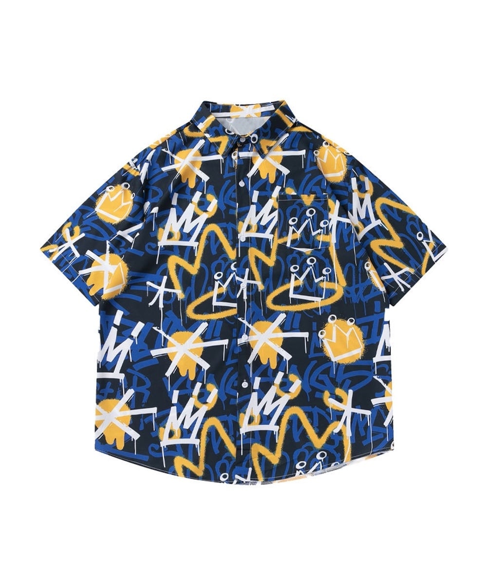 落書き柄、絵画柄、フルーツ柄、抽象柄、幾何学柄…今季の総柄シャツのバラエティ豊富なデザインに。