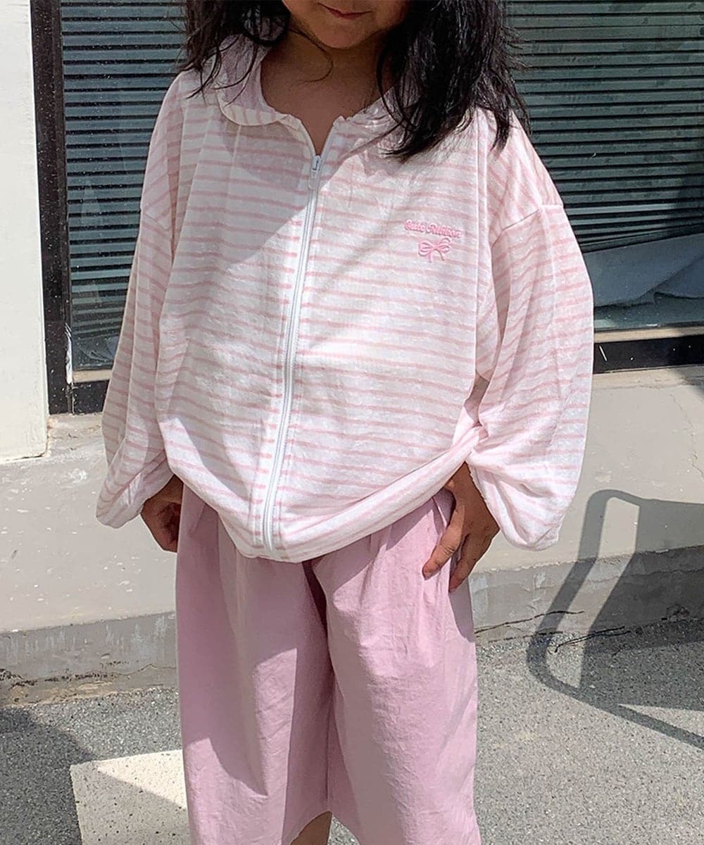 さらっと羽織れて、紫外線対策にもぴったりなジップアップパーカー。ボーダー柄が可愛い薄手の生地にふんわりシルエットで、デイリー使いに大活躍する一枚です。