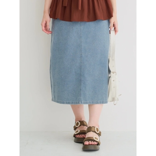 キラキラと輝く大小のラインストーンを散りばめたナロースカート
