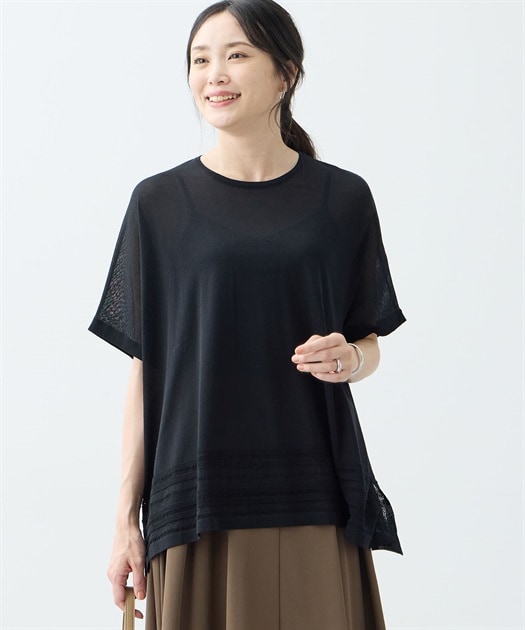 moment+ 透かし編みクルーネックサマーニットプルオーバー