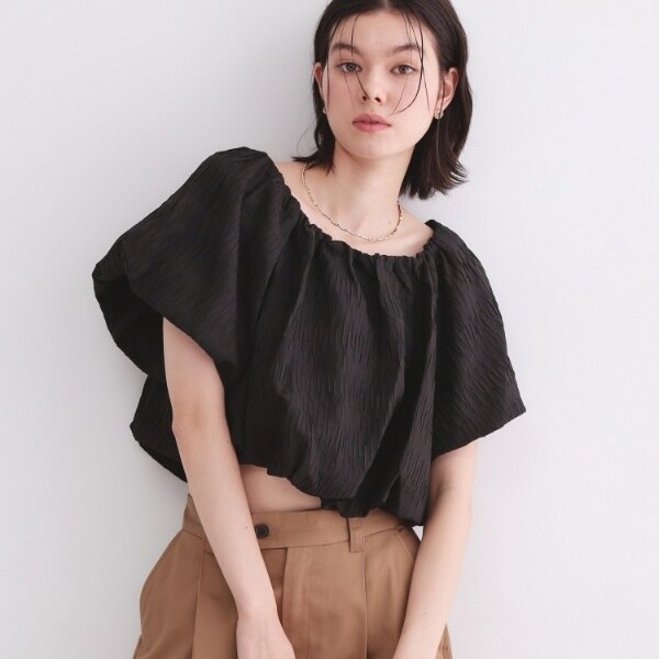 ・袖と裾をバルーンデザインで、ふんわりボリューム感を持たせたデザインブラウス。
