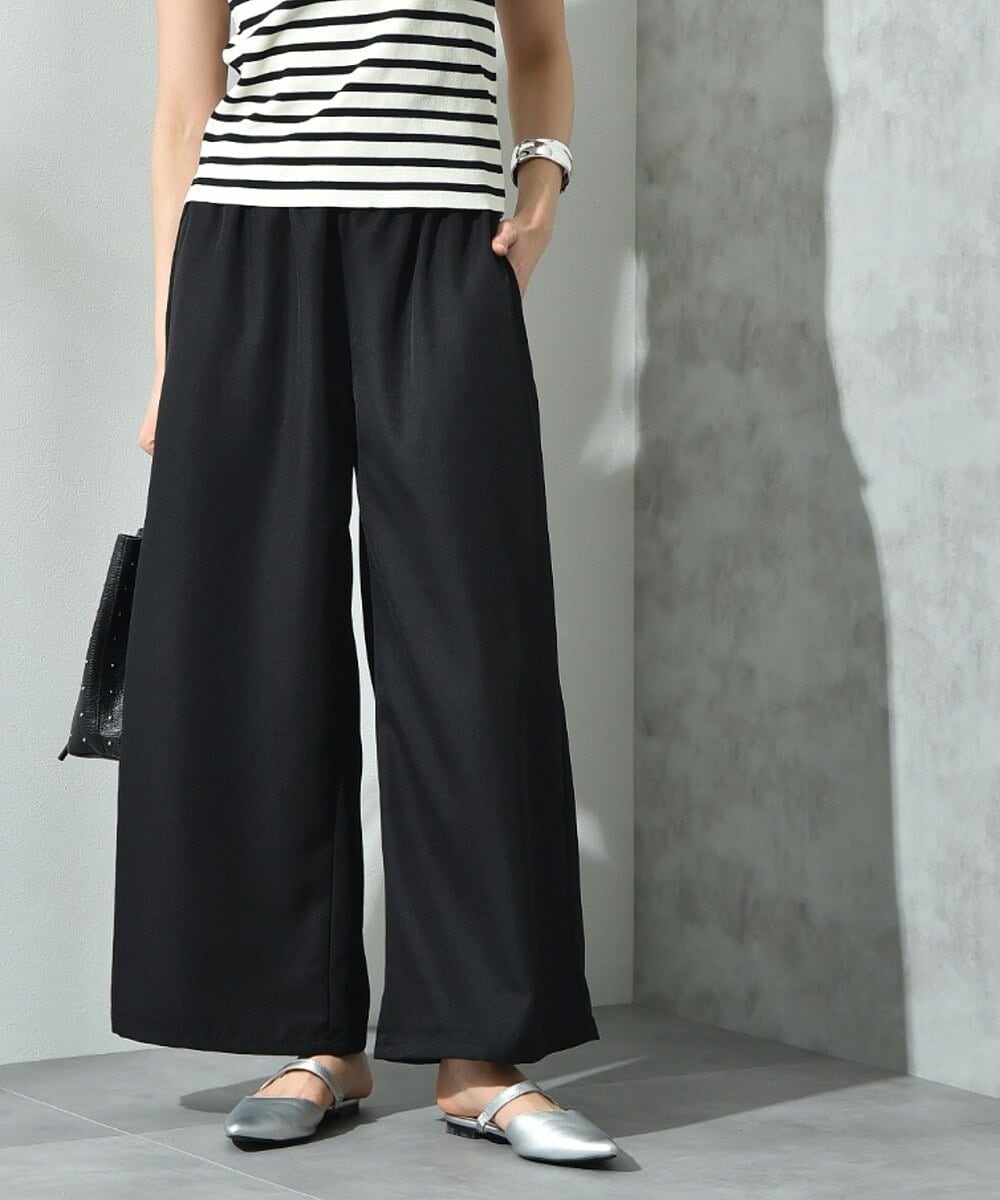 〔 +サイズ 〕 麻調合繊 ワイドパンツ