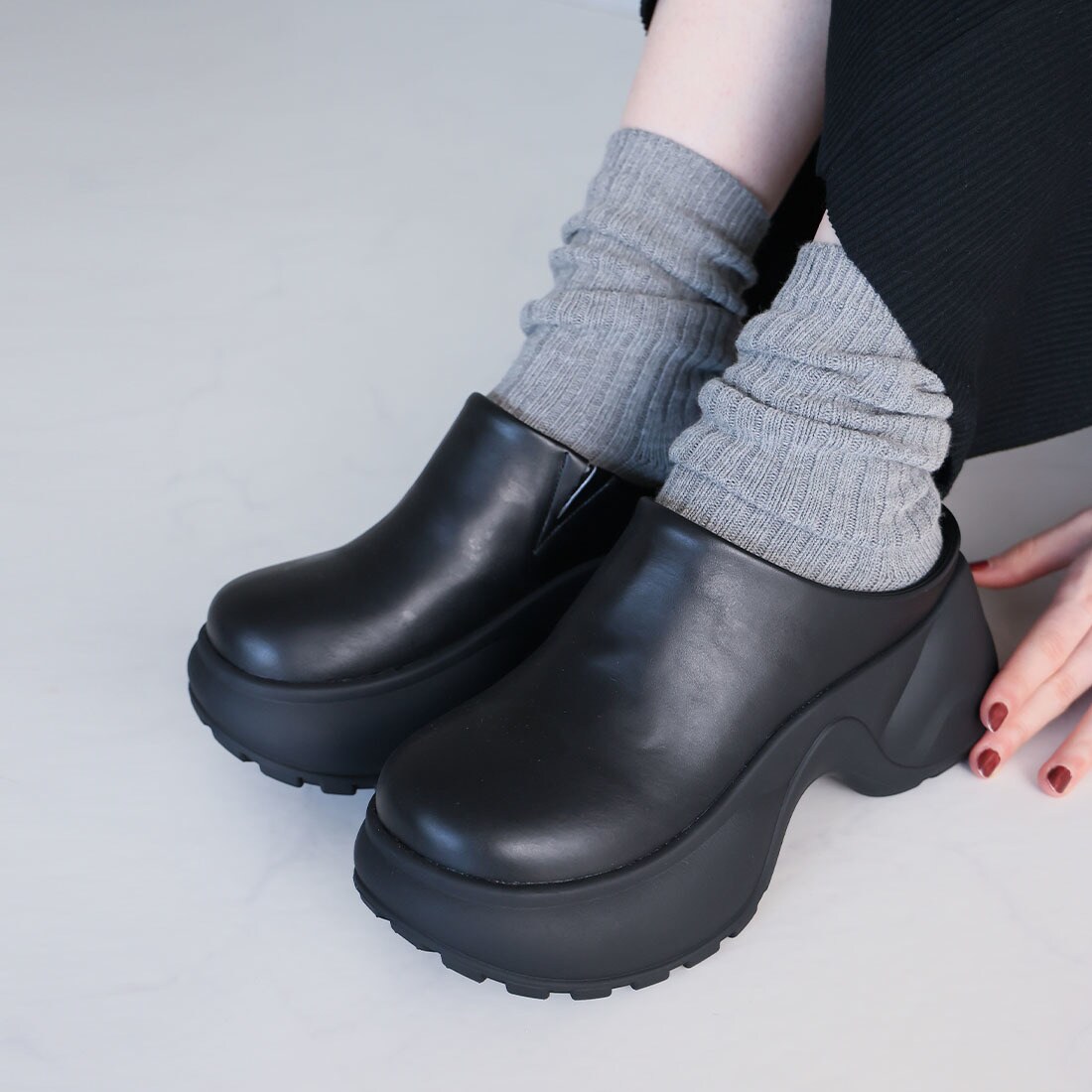 ・ぽってりとしたトゥ×厚底でシンプルなコーデに抜け感をプラス。