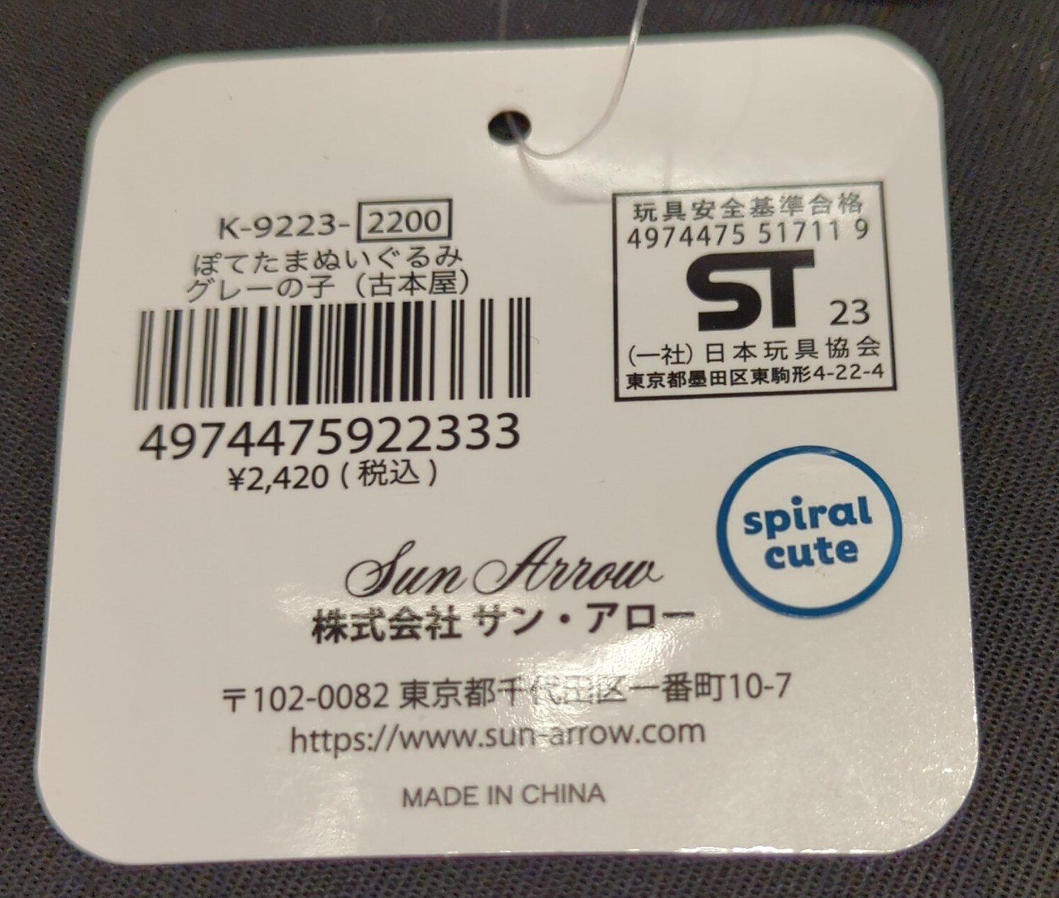 サン・アロー ぽてたまぬいぐるみ ハチワレ さすまた