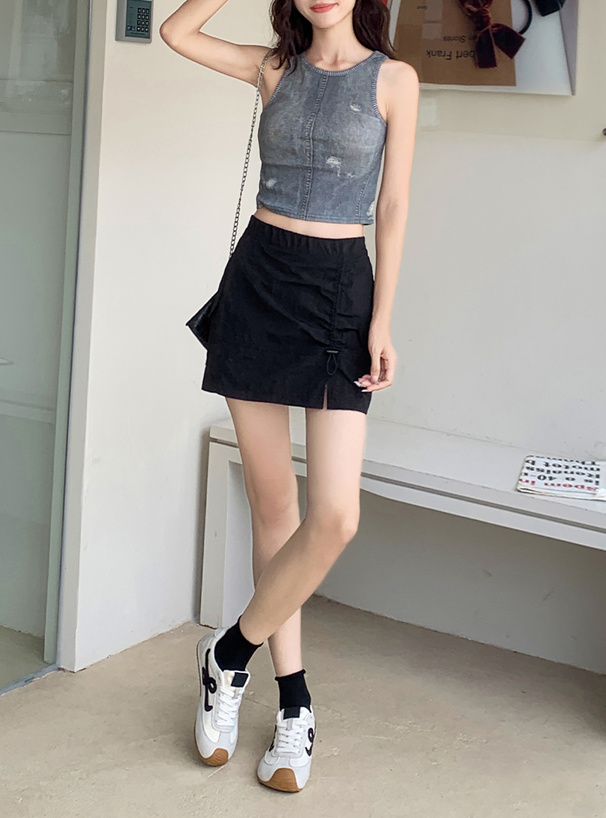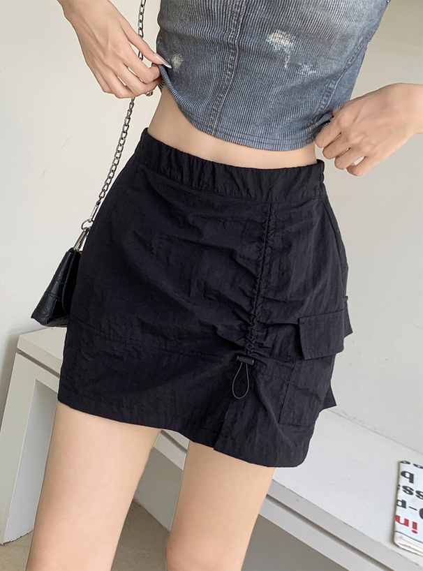 インパン裏地付きドロストカーゴミニスカート[ai194]