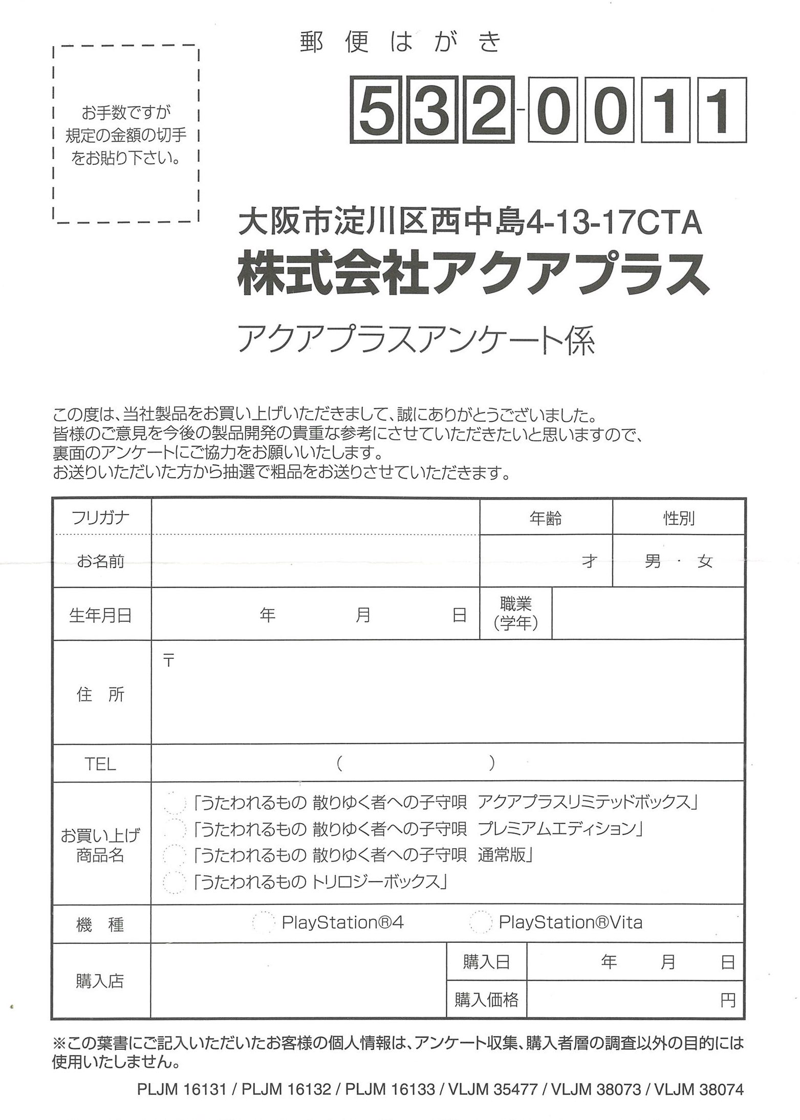 PSV うたわれるもの 散りゆく者への子守唄 プレミアムエディション 限定版