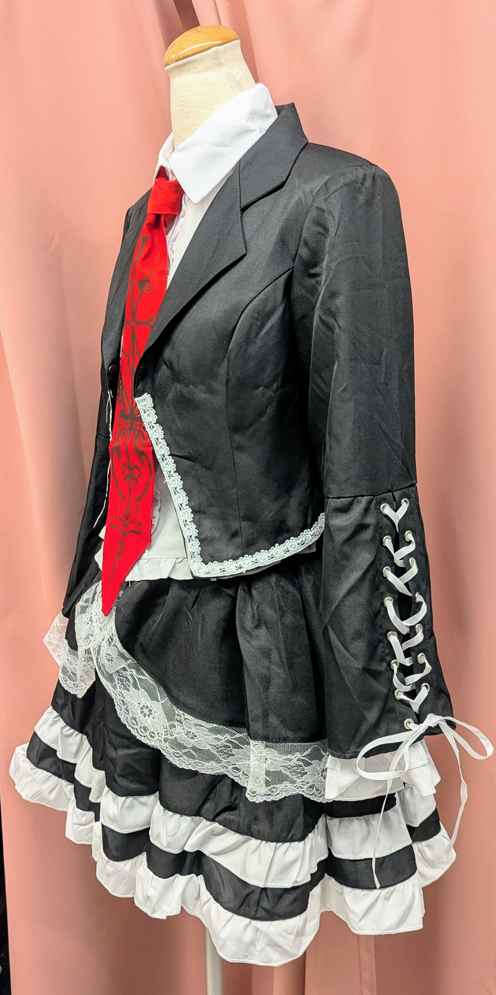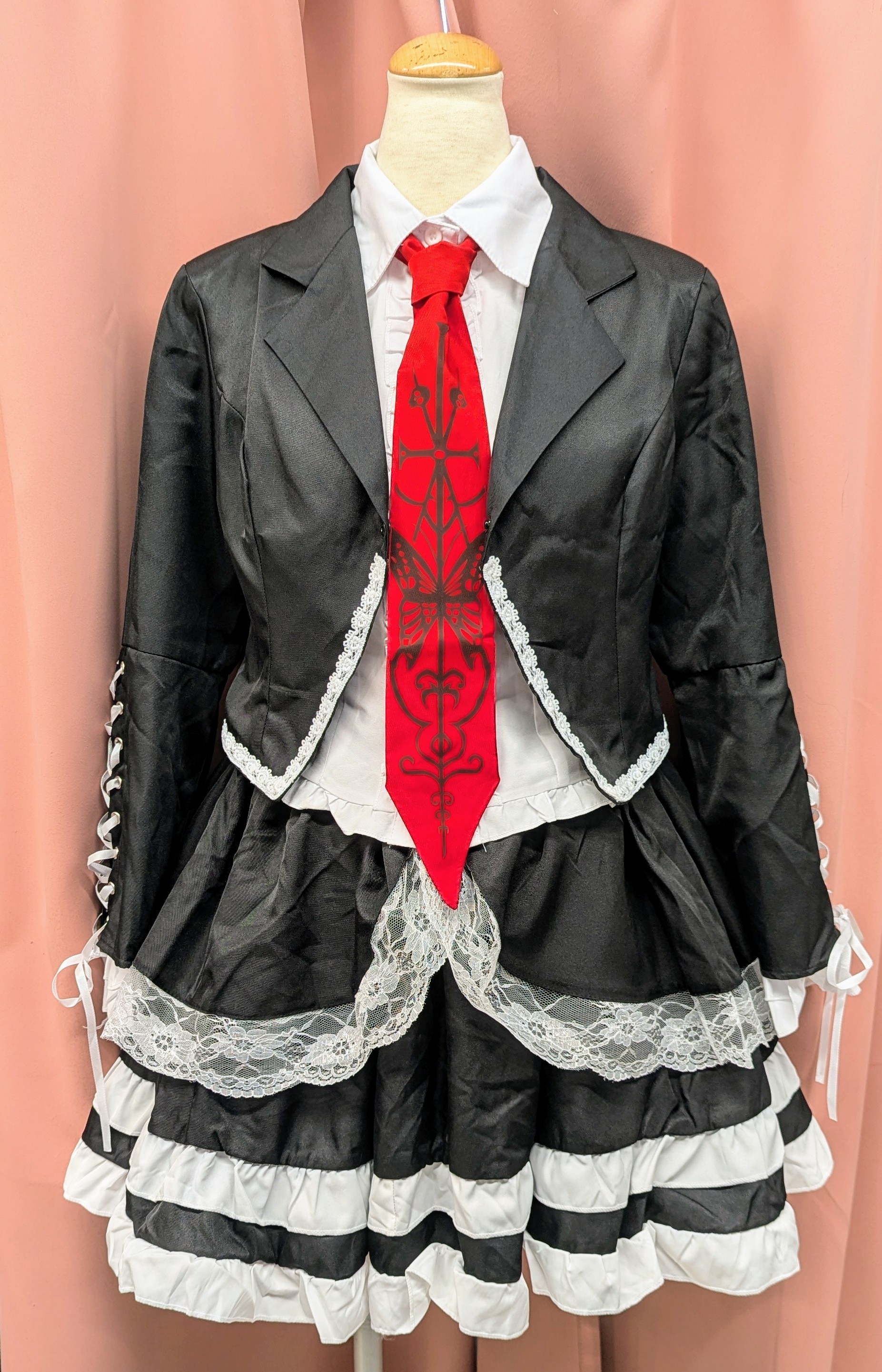 状態 : 撮影に影響する大きな汚れはありません。(状態:6) 製作 : サークル製 サイズ : 女性Mサイズ位(日本標準サイズ/サイズ詳細はお問い合わせ下さい) セット内容 : ジャケット、スカート、ブラウス、ネクタイ、ソックス、ソックスパーツ、ヘッドドレス ※セット内容以外の物は含まれません。