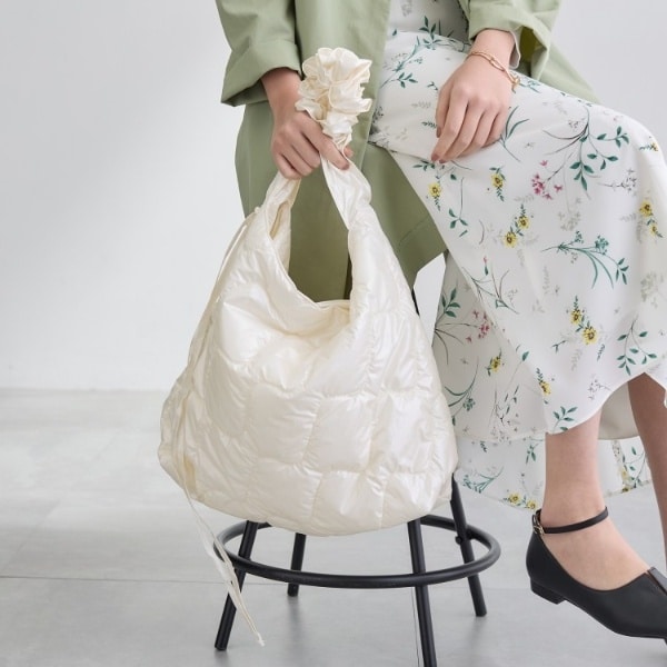 短く絞ることでフリルのようなデザイン性あるバッグへ変わる2WAY仕様です。