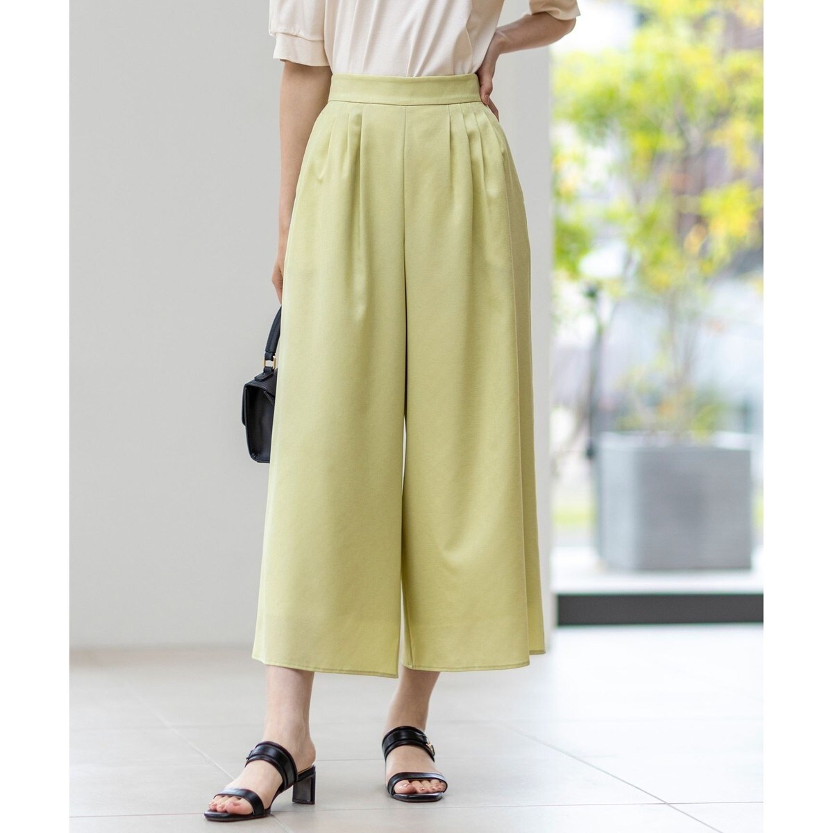 ・たっぷりとした分量感のタックフレアパンツ・体型をカバーし、穿くだけでサマ見えする一着・細かく入ったタックデザインが程よくリラクシーな雰囲気に・軽く柔らかいマット裏地を使用し、透け感をカバーしながら涼やかな印象