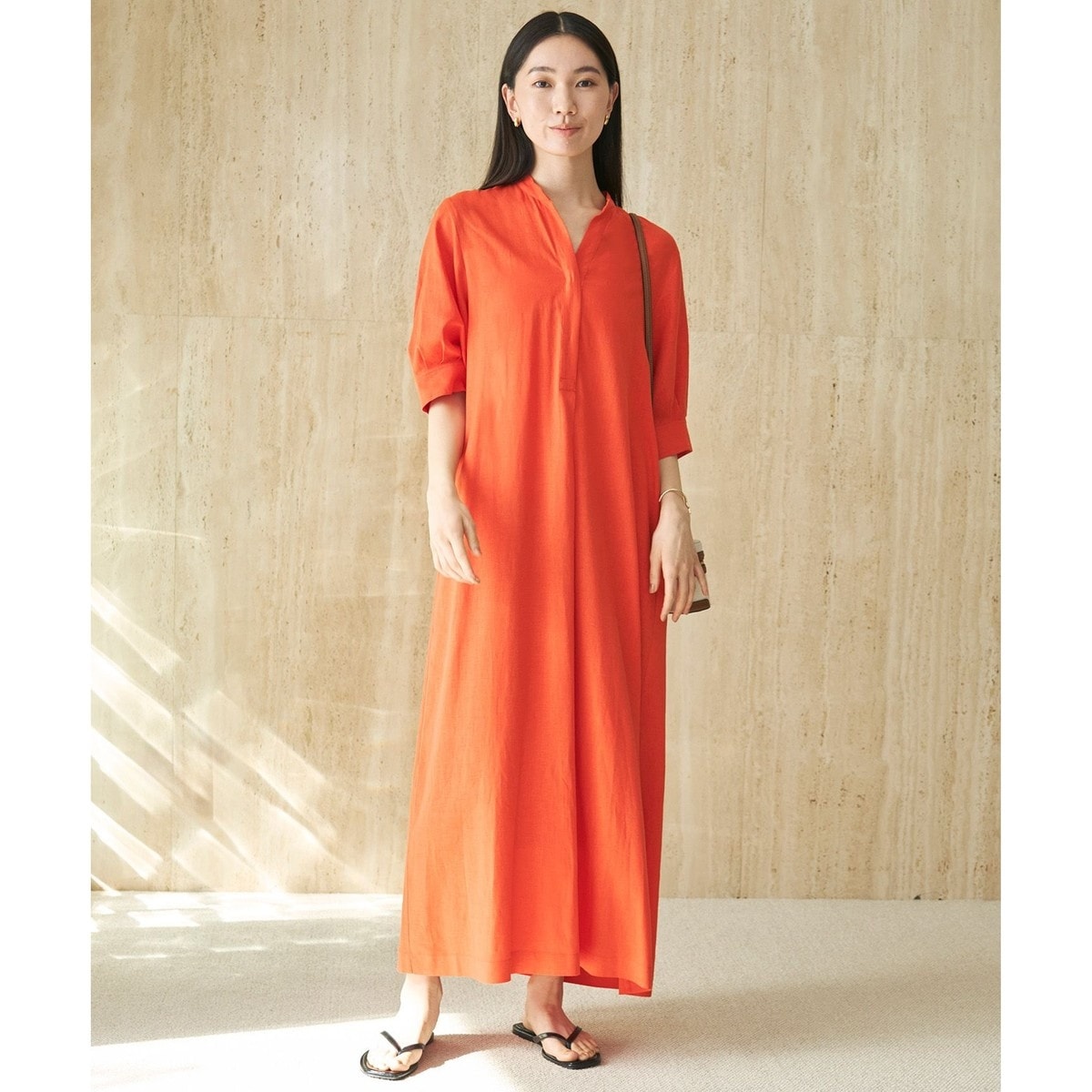 ■デザイン暑い夏にさらっと1枚で決まる上品ワンピース。タックスリーブと、裾に向かってふんわり広がるシルエットが魅力です。背中にはギャザーを施し、360°どの角度から見ても女性らしい柔らかな印象に仕上げました。少し長めのハーフスリーブで、羽織りなしでも安心して着用可能。ゆったりとしたシルエットは体のラインを拾わず、風通しも抜群。暑い季節でも快適に過ごせる、これからの時期にぴったりな1枚です。