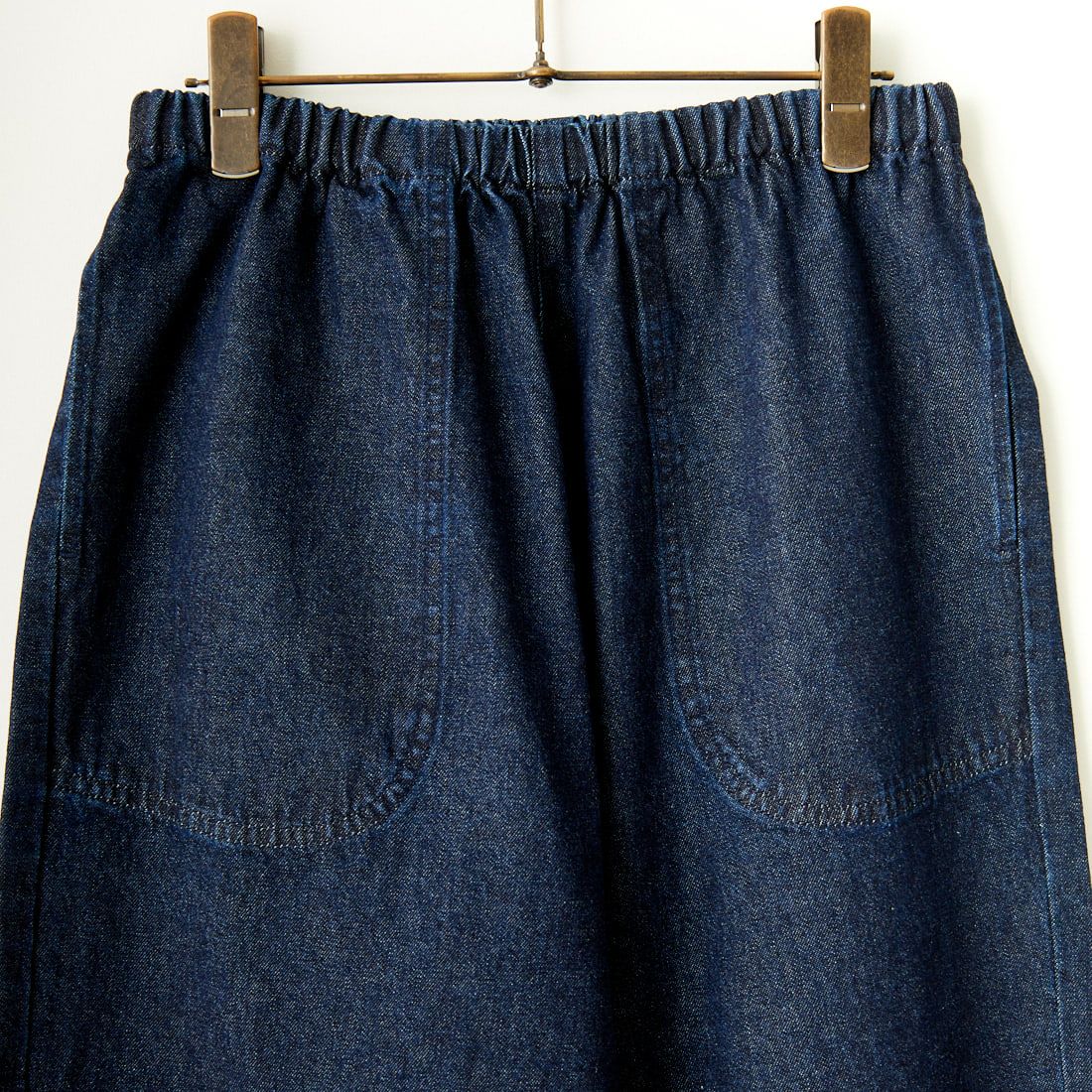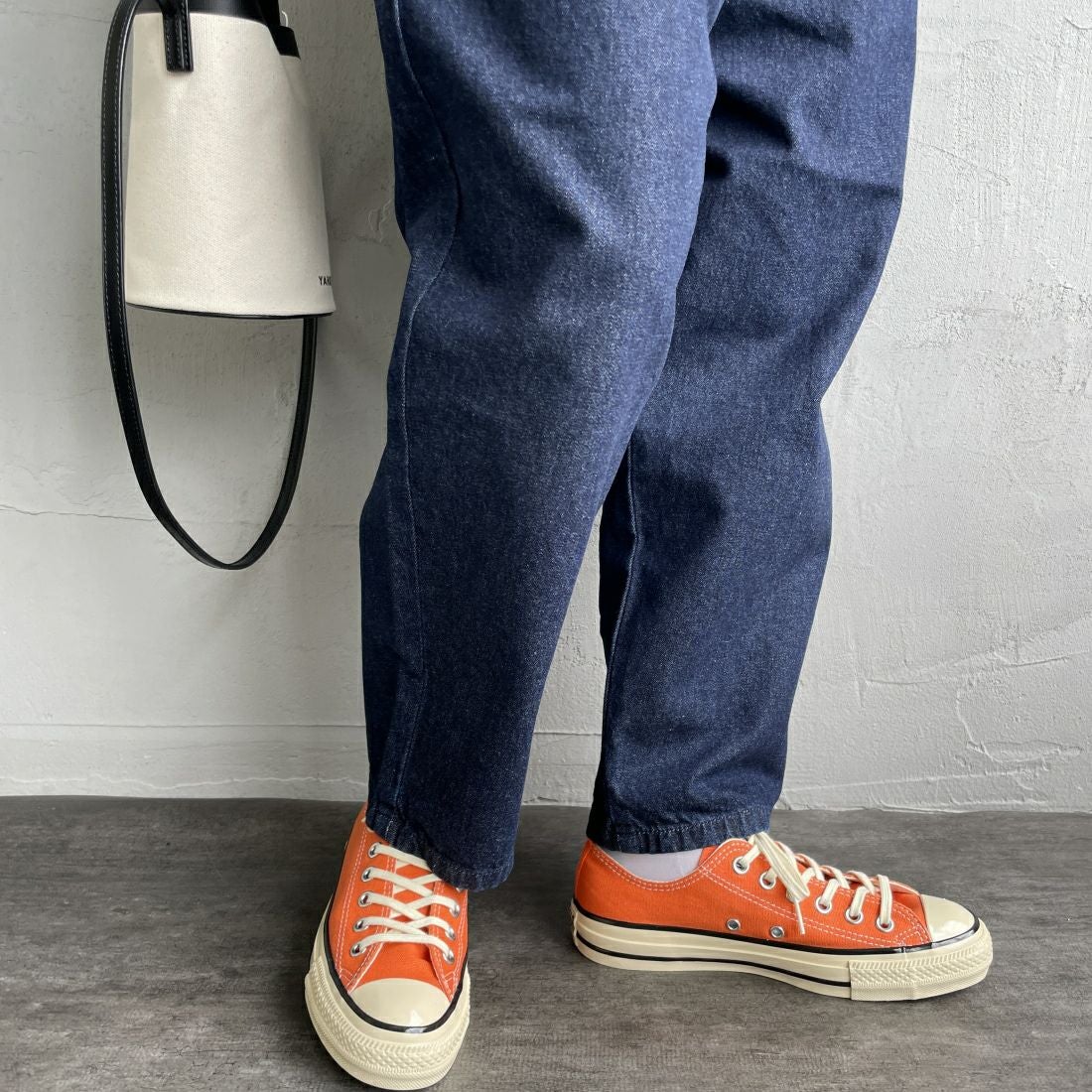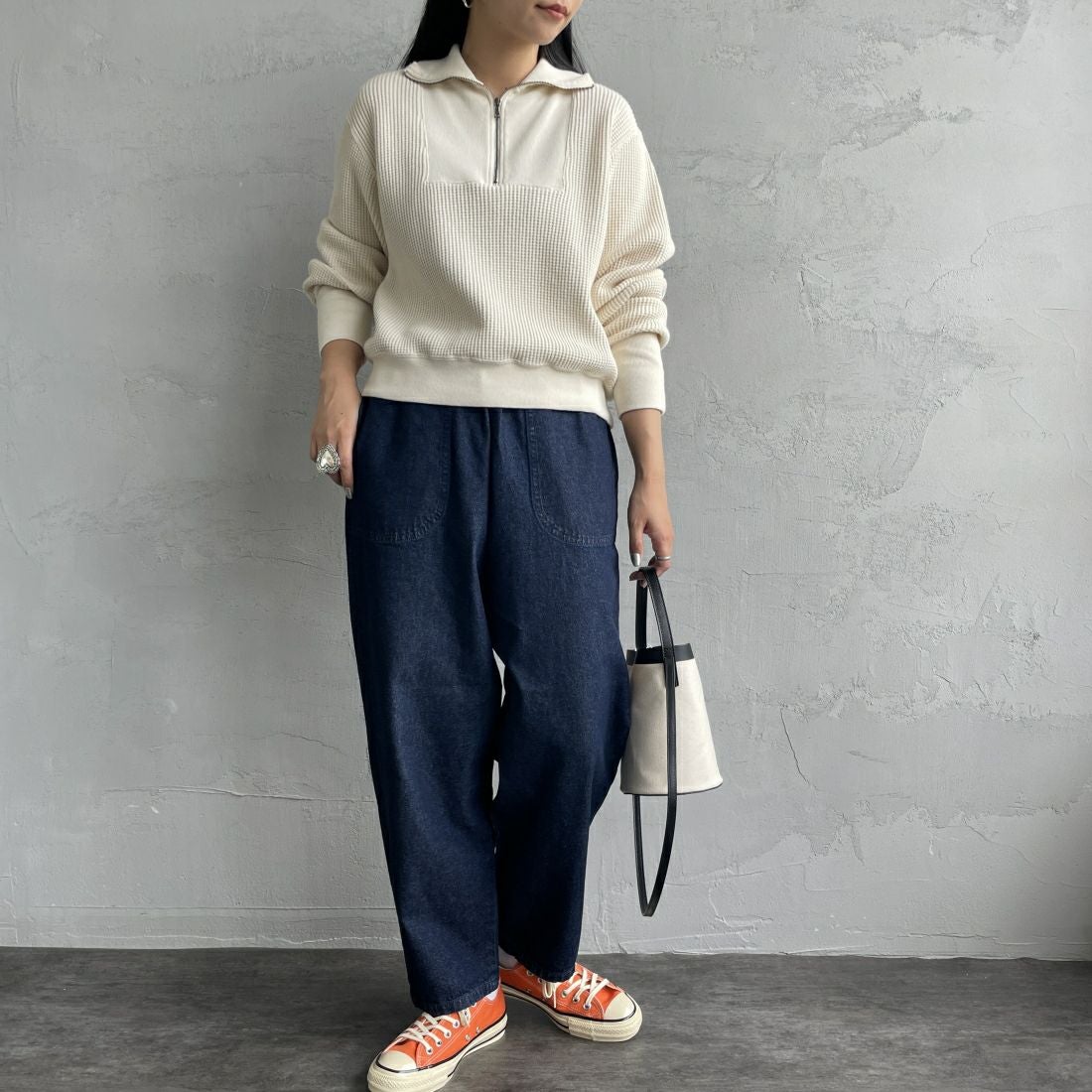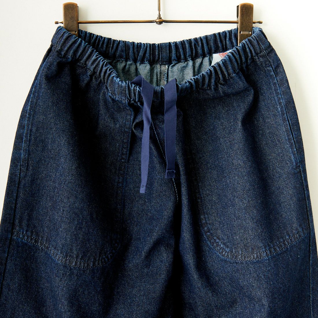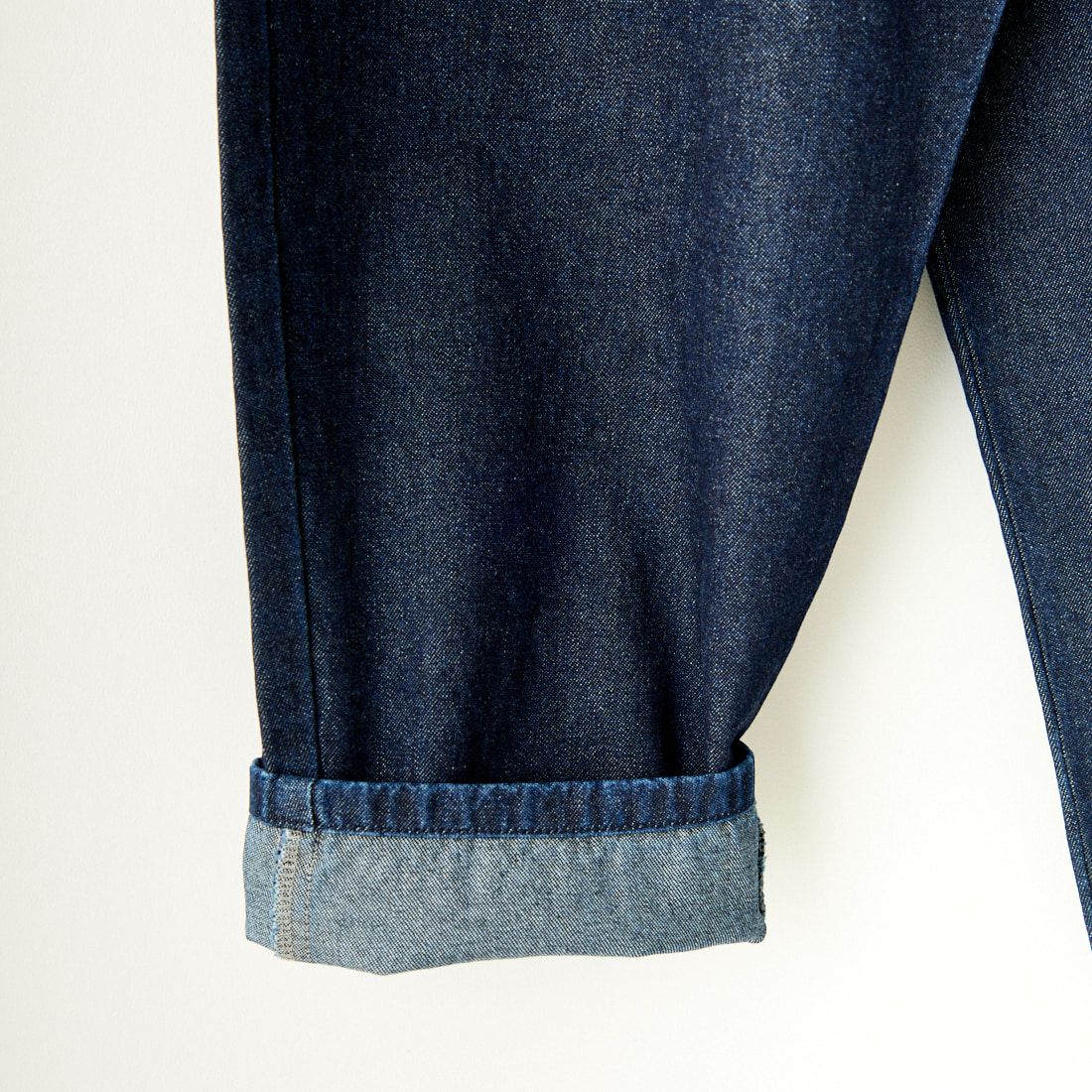履き心地も軽い、デイリーユースに最適なデニムイージーパンツ。ヴィンテージのデニムを参考にしたナチュラルなムラ感が魅力で、通常の10ozデニムよりもソフトな仕上がりになっています。ウエスト部分は総ゴムのプルオン仕様で、リラックス感のある着心地。裾に向かってテーパードがかかったクロップド丈は、あらゆるトップスと好相性。体型をカバーしつつ、すっきりとしたバランスの良い着こなしが叶います。