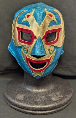 プロレスマスク ラウルロメロ製【ドス・カラス(水色×金・赤フチ)】刺繍入り