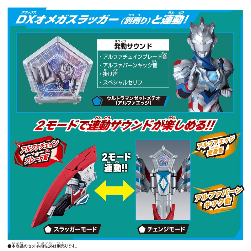 ウルトラメテオは、別売りの「変身アイテム DXオメガスラッガー」と連動!