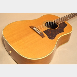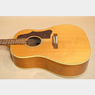 J-50はJ-45のナチュラル・フィニッシュ・バージョンとして1942年に発表され、1947年頃から本格的な生産が始まります。J-45と並んで多くのミュージシャンから愛され、その時々のサウンドを数多くの名盤に残してきたギブソンを代表するもう一つの顔です。J-45同様、その時々の流行り廃りに合わせて様々なマイナー・チェンジが行われてきたJ-50。それぞれの時代のそれぞれのスぺックから成るサウンドにはそれぞれの魅力があり、一つのモデルとして括るには難しいバラエティーに富んだサウンドがあります。今回入荷はギブソンの日本での旧代理店を務めていた山野楽器さんが日本向けにオーダーしたLTD J-50 Adj.。60年代J-50をリイシューしたアジャスタブル・ブリッジ・バージョンのJ-50です!