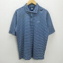 y■ナイキゴルフ/NIKE GOLFボーダー半袖ポロシャツ/ウェア■紺系【メンズL】MENS/21【中古】