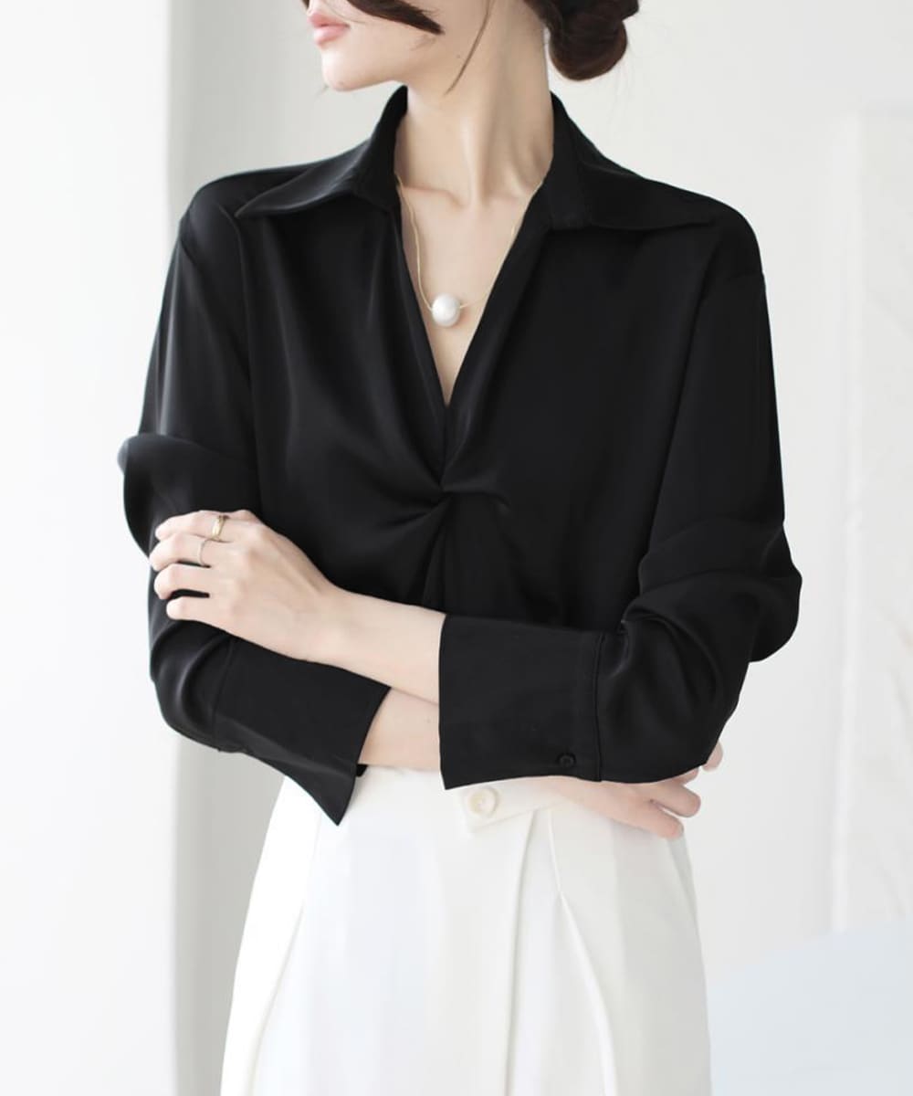 しなやかなドレープが美しいエレガントなブラウス。