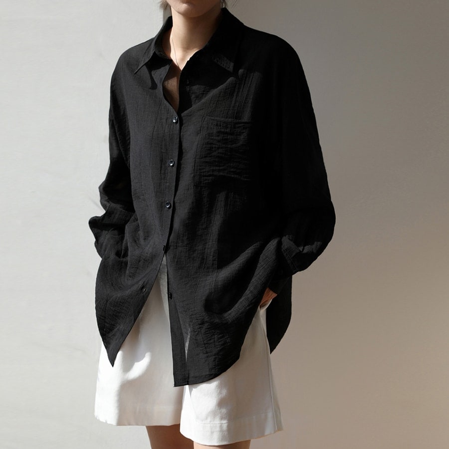 長袖 シアーシャツ