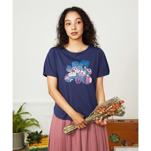 【接触冷感/吸水速乾/UV】フラワーフォトプリントTシャツ