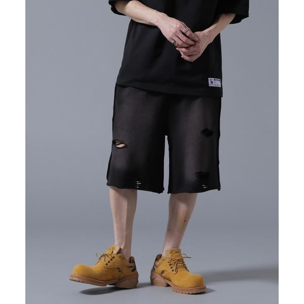 ダメージや色落ちが絶妙なスウェットショーツ。
