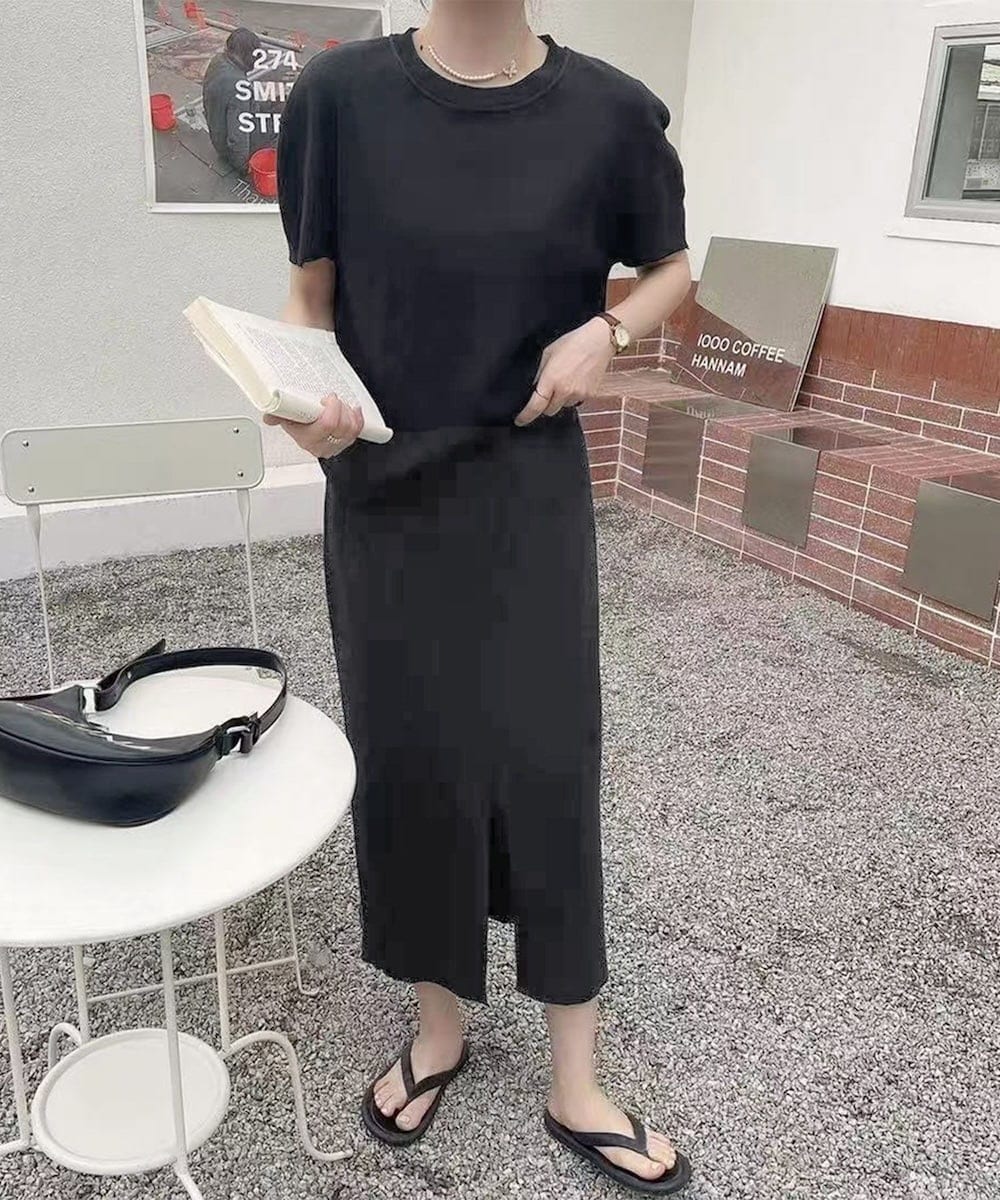 リブニットダブルジップパーカ リブニットナロースカート セットアップ