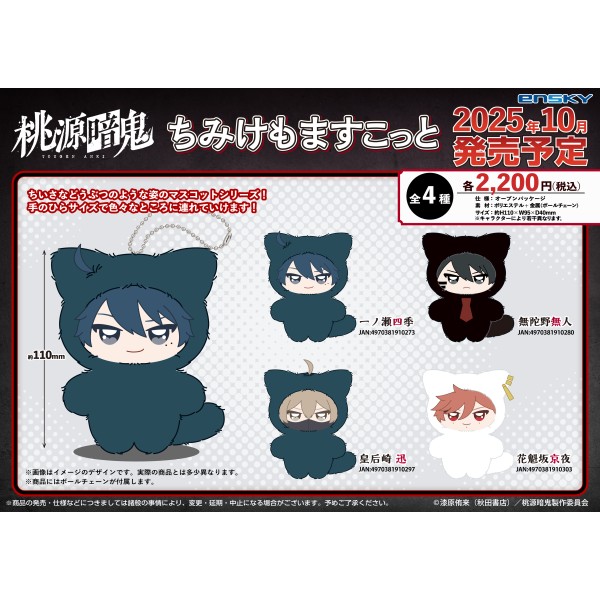 TVアニメ「桃源暗鬼」より、ちいさなどうぶつになった、手のひらサイズのマスコットシリーズ、「ちみけもますこっと」が登場です!