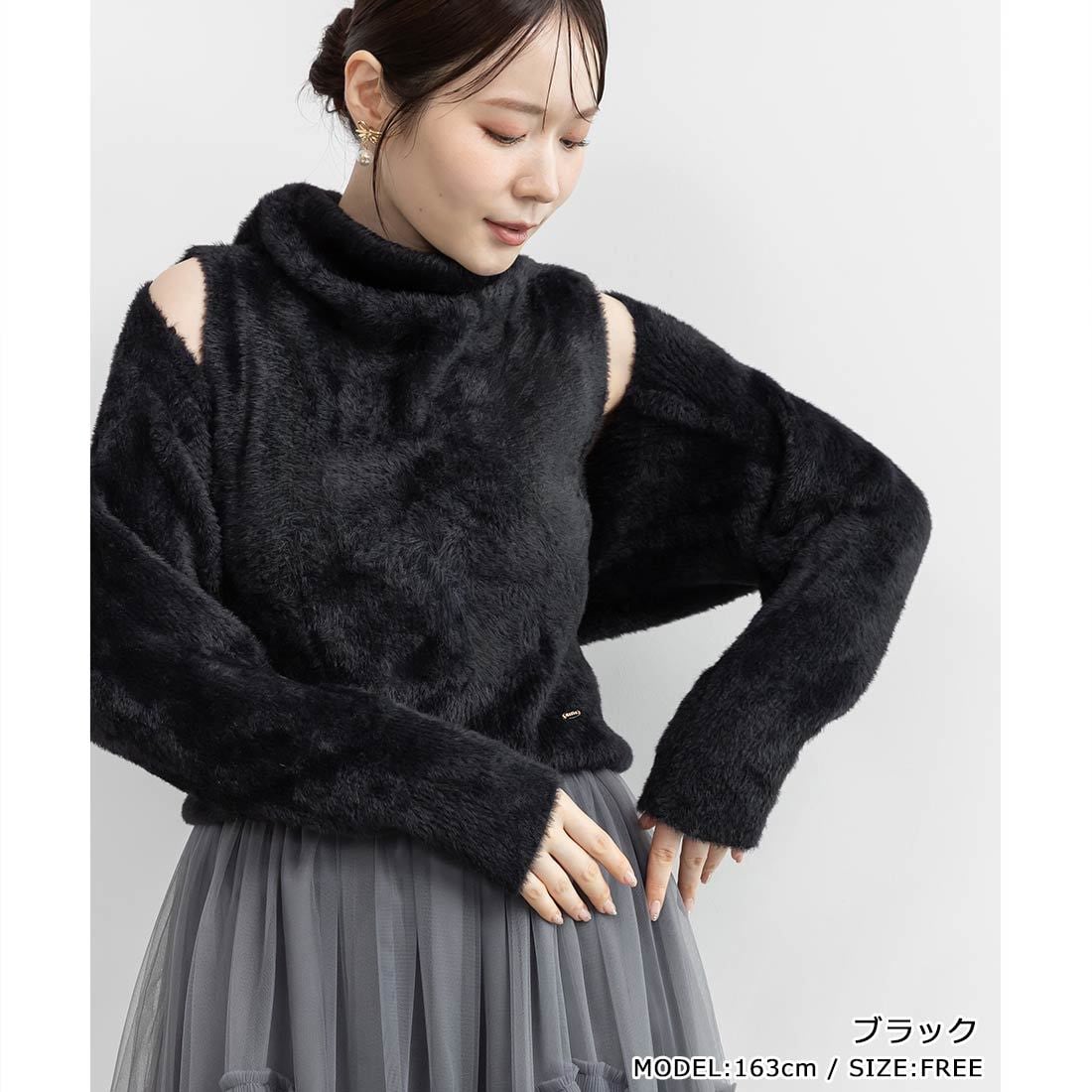 【新品】MoNiLE モニーレ フェザー ニット ケープ風 カーディガン ふわふわ ブラック シャギーニット ボレロ オケージョン