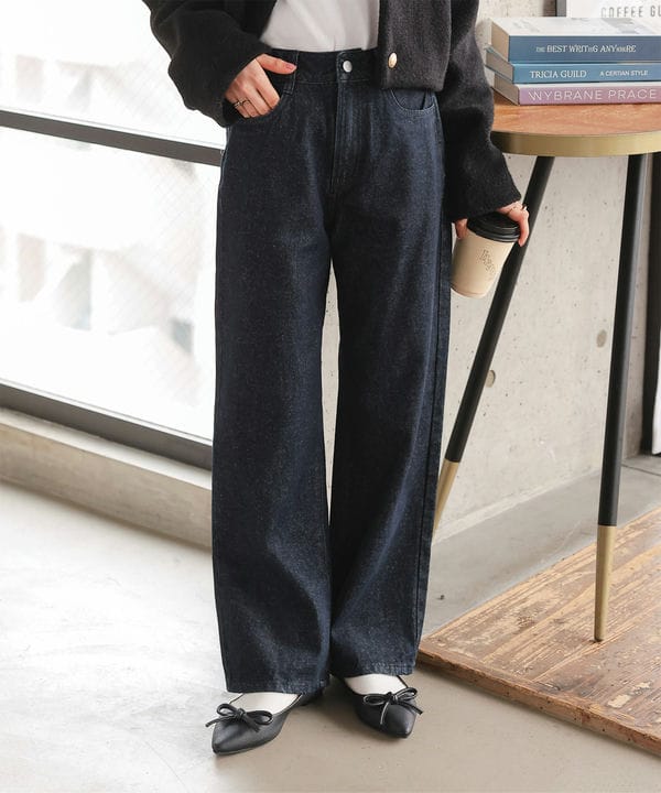 Petitle ハイウエストセンターシームセミフレアデニムパンツ PM