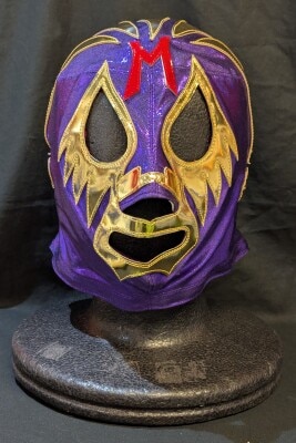 プロレスマスク 【ミル・マスカラス(紫特殊生地×白・金フチ)】 タグなし