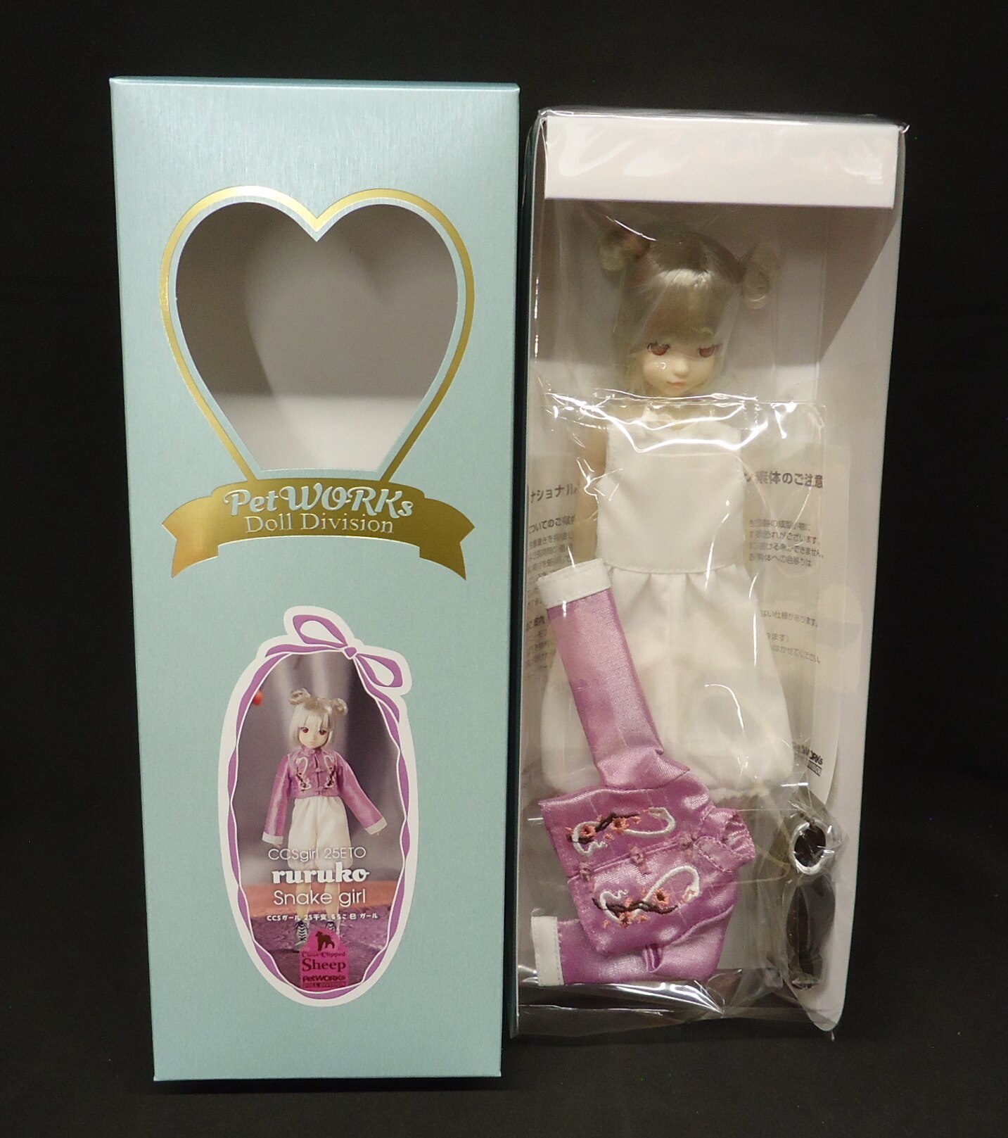 | ピュアニーモフレクションXS+ペットワークスオリジナルヘッドドールのruruko。 巳年にちなんだ白蛇刺繍チャイナスタイルの「CCSgirl 25干支 ruruko 巳 girl」です。 内容物:ruruko本体、刺繍チャイナジャケット、かぼちゃパンツオールインワン、ハーフブーツ(STOC)。 髪色:シルバー 瞳色:ワインレッド 肌色:色白肌 マスクデザイン:ときのりようこ 素体:PW別注ピュアニーモフレクションXS/フル可動 原型製作:澤田啓介(澤田工房) 衣装製作:STOC 全高約22cm PVC、ABS樹脂、布製衣装 MADE IN JAPAN(ボディと衣装は中国製です) ※写真は開発中サンプルのため最終仕様と異なる場合があります。ご了承下さい。 ※写真はできるだけ現物の色に近いように心がけておりますが、ディスプレイの差などにより若干現物と違う色に見えることもあります。 ※ドール本体・衣装が別々に入っています。お客様ご自身で衣装を着せ付ける仕様です。 ※素材の仕様上、ヘッド・ボディにはパーツごとの色ムラや細かい異物・バリ・細かい傷があります。不良ではありません。また、生産時期により色の差があります。 ※手作業でのマスク彩色のため、同一商品でもメイクにズレやブレが発生し、左右非対称です。不良ではありません。 ※手作業での植毛・ヘアカットのため、同一商品でも多少の違いがあり、左右非対称です。不良ではありません。 ※ruruko本体はPVC製です。衣装・小物等の色が、人形本体に色移りする場合があります。ご注意下さい。 ※衣装・小物等はデザイン性を重視して繊細な作りになっております。お取り扱いにご注意下さい。 ※衣装・小物等は手作業で制作のため個体差があります。ご了承下さい。 ※刺繍チャイナジャケットは、チャイナボタンで前を閉じる仕様です。 ※本体の塗装は強い摩擦で剥げる場合があります。ご注意下さい。 ※高温になる場所には置かないで下さい。変形のおそれがあります。 ※ボディのパーツは脱着可能な仕様です。無理な力を加えると破損する恐れがあります。パーツ同士の結合、脱着の際は十分お気をつけ下さい。 ※小さな部品があります。誤飲の危険がありますので、小さなお子様には絶対に与えないで下さい。 ※商品到着後、すぐに中身をご確認下さい。 ※対象年齢15歳以上。 |