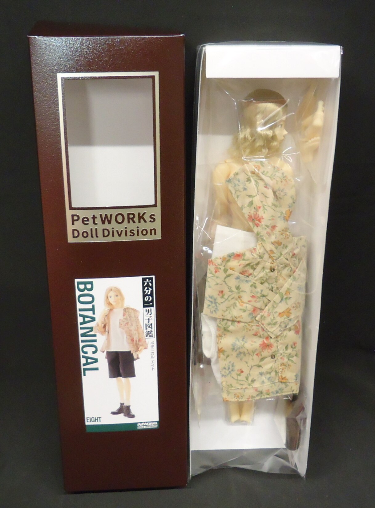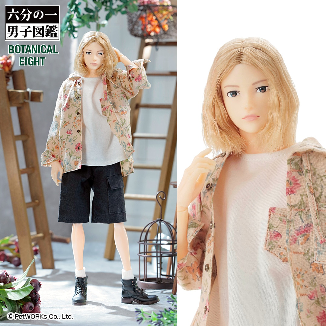 | …君となら、終わらない約束ができる。共に白いページを埋めていこう 「六分の一男子図鑑」 ディテールにこだわったファッションドールを作り続けているペットワークスが展開する1:6スケールの男子ドールシリーズ。 エイトはしなやかな細身のボディに少年ぽさの残るフェイス。手先・足先は取り外し可能でナインと共通のパーツ。 花柄のシャツが風に揺れ、村の鐘の音が空に溶けていく。「ボタニカル エイト」は田園詩の風景を纏うコーディネイトモデルです。 内容物:エイト本体、花柄フーディシャツ、花柄ポケットTシャツ、ハーフパンツ、レッグウォーマー、メンズワークブーツ。 仕様詳細: 髪色:アッシュブロンド 瞳色:アッシュブラック 肌色:アイボリーベージュ 素体:PW-28BODY(ペットワークスオリジナル) ヘッド・素体原型:澤田啓介(澤田工房) 衣装製作:関口妙子 全高約28cm PVC、POM、ABS樹脂、布製衣装 MADE IN JAPAN(ボディは中国製、衣装はベトナム製です) ※足先を抜いてブーツを履かせてください。 ※写真は開発中サンプルのため最終仕様と異なる場合があります。ご了承下さい。 ※写真はできるだけ現物の色に近いように心がけておりますが、ディスプレイの差などにより若干現物と違う色に見えることもあります。 ※ドール本体・手先・足先が別々に入っています。お客様ご自身で手先・足先を組み立てる仕様です。 ※素材の仕様上、ヘッド・ボディにはパーツごとの色ムラや細かい異物・バリ・細かい傷があります。不良ではありません。また、生産時期により色の差があります。 ※手作業でのマスク彩色のため、同一商品でもメイクにズレやブレが発生し、左右非対称です。不良ではありません。 ※手作業での植毛・ヘアカットのため、同一商品でも多少の違いがあり、左右非対称です。不良ではありません。 ※ヘッド、手先、足先は抜ける仕様です。 ※衣装を着せて高温多湿な場所での長時間にわたる保管はなるべくお避け下さい。色移行(服の色が肌色に移る)の恐れがあります。 ※衣装・小物等はデザイン性を重視して繊細な作りになっております。お取り扱いにご注意下さい。 ※チャンパオは、チャイナボタンで前を閉じる仕様です。 ※本体の塗装は強い摩擦でとれる場合があります。お取り扱いにご注意下さい。 ※高温になる場所には置かないで下さい。変形のおそれがあります。 ※小さな部品があります。誤飲の危険がありますので、小さなお子様には絶対に与えないで下さい。 ※商品到着後、すぐに中身をご確認下さい。 ※対象年齢15歳以上。 |