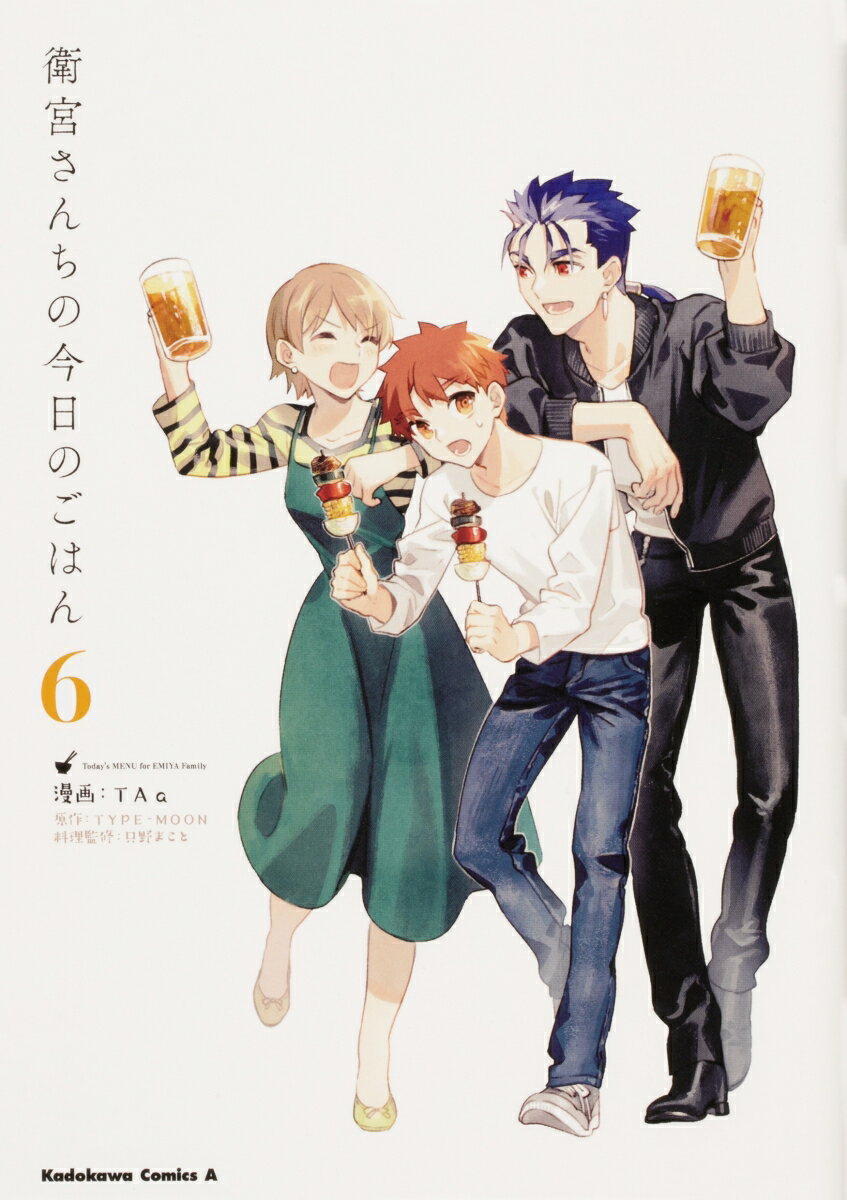 年賀のお雑煮:セイバー、凛、桜が初詣の後にいただくのは……。ふわふわかに玉:大学受験生時代の大河、思い出のメニュー。春キャベツの野菜炒め:心温まる凛と桜の姉妹協力料理。ふわとろ親子丼:一成、慎二、ランサーの来訪で男だらけになってしまった衛宮邸で作る絶品料理。ゴロっとほっくりコロッケ:児童館に来たセイバーが、ままごとの際に思い出した料理とは。豪華!鮭のちゃんちゃん焼き:アウトドアを満喫!お酒にも合う料理とは?特別編1 なめらかかぼちゃプリン:地元の料理教室で鉢合わせたキャスターとアーチャーは……。特別編2 ???