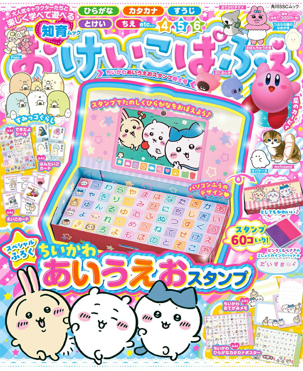 大人気キャラクターたちといっしょに、たのしく学べてあそべる知育ムック♪もじやすうじが学べるおけいこページと、ふろくも大充実!スペシャルふろくは、人気の「ちいかわ」のあいうえおスタンプセット★ひらがなとキャラクターのスタンプがぜんぶで60コ入り!あそんだあとは、パソコンふうのデザインの、フタ付きケースにしまおう♪おてがみやメモなどに好きなことばをおして、ちいかわたちといっしょに、ひらがなをおぼえよう!とじこみふろくも、もりだくさん!ときおわったおけいこページにはれる、「できたよシール」や、ちいかわのひらがなカタカナひょう、おてがみメモ、キャラクターたちとおぼえるえいごカード、はんたいごカードが入っているよ★【掲載されている主なキャラクター&ゲーム】ちいかわ/すみっコぐらし/mofusand/星のカービィ/オバケーヌ/ぷにるんず/Pupu/つぶらな瞳のなまがき/おぱんちゅうさぎ/おでかけ子ザメ●とじこみふろく できたよシール●とじこみふろく ちいかわ ひらがなカタカナひょう●ひらがな(1)〜(7)●カタカナ(1)〜(2)●すうじ(1)〜(4)●とじこみふろく えいごカード●とじこみふろく はんたいごカードとじこみふろく ちいかわおてがみメモ