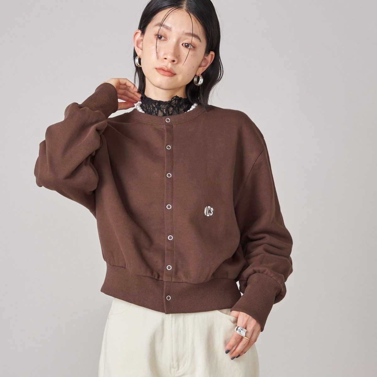 コンパクトサイズの裏毛カーディガンは中肉のコットン裏毛を使用し初秋から長く使用できます。