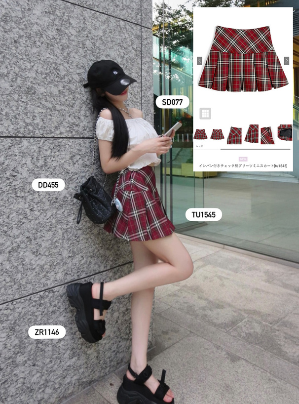 インパン付きチェック柄プリーツミニスカート[tu1545]