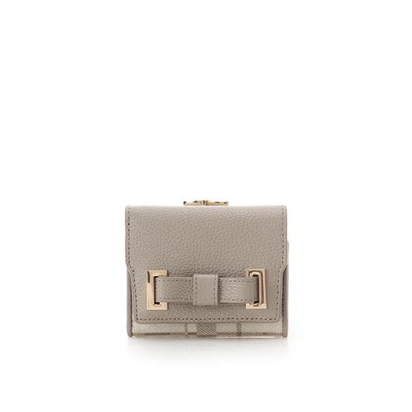 ◇Samantha Thavasa(サマンサタバサ)のチェック柄エムシュシュ 口金折財布「エムシュシュ」シリーズから新しくオリジナルチェック柄の折財布が登場。【デザイン】さりげないリボンモチーフとオリジナルのチェック柄デザインで甘さを取り入れて、上品な印象に仕上げています。オリジナルのチェック柄はラメ糸を織り込んだ国産の生地に転写プリントで仕上げました。角度によってキラキラと輝くのがポイント。三つ折りでコンパクトな仕様になっているのでバッグの中でもかさばりません。小さいながらもカードポケットやフリーポケットも充実しており、収納力も抜群です。小銭入れはがま口になっているので大きく開閉ができ、片手でも扱いやすいです。【素材】ポリエステルと大きめのシボが特徴のレザーを使用してます。<商品のお取り扱いについて>この商品は特殊なプリント加工を施しています。摩擦や高温多湿の環境や他の素材と密着した状態での保管はプリントの移染の原因となります。プリント加工の特性とご理解した上でお取り扱いをお願いいたします。