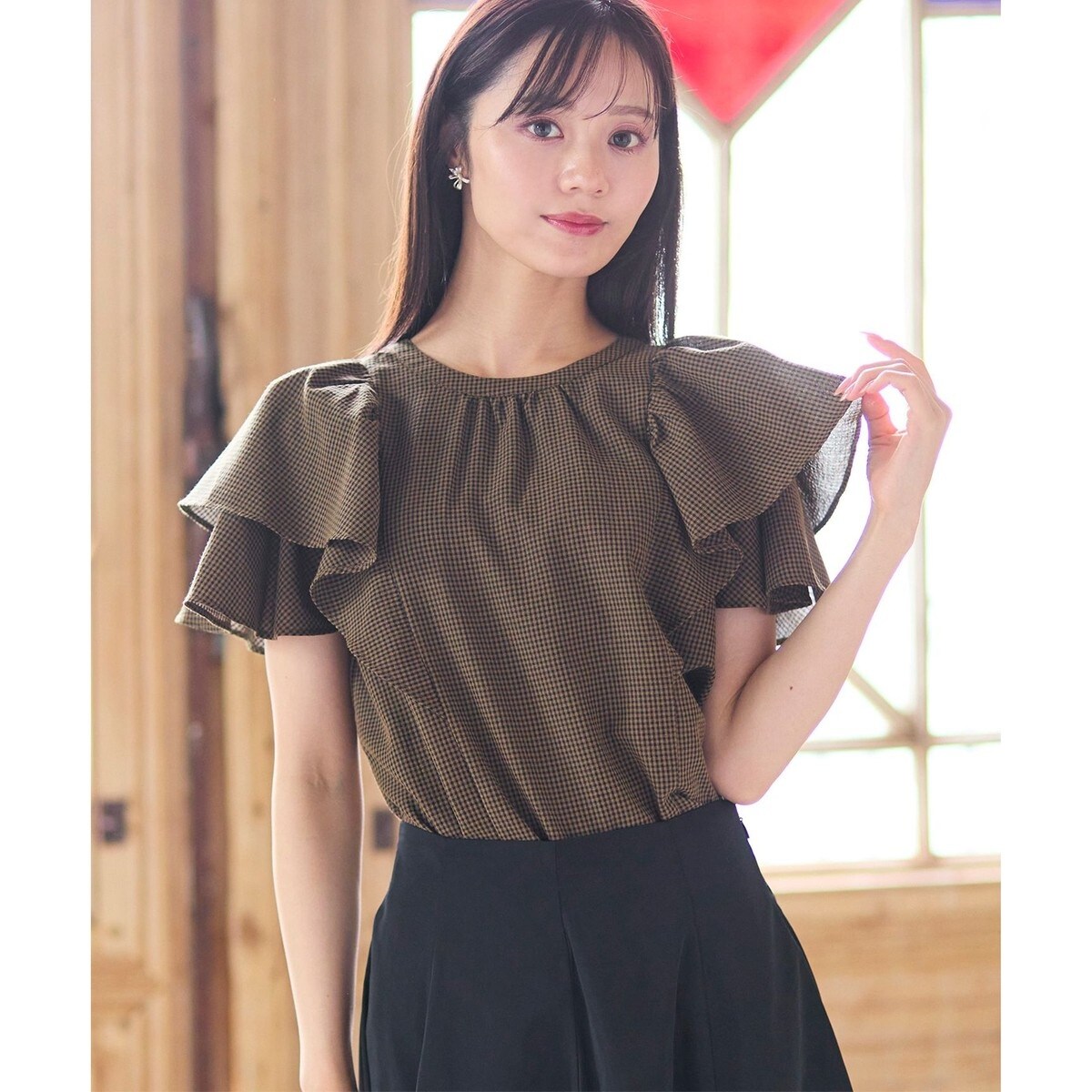 肩まわりをふんわり包む立体感のある2段フリルスリーブが魅力のブラウス。気になる腕まわりを自然にカバーしながら、女性らしい華やかさを演出してくれます。チェック柄は落ち着いた印象を与え、通勤からお出かけまで幅広いシーンで活躍する、着回し力の高い1枚です。首元はギャザーを寄せたラウンドネックで、アクセサリーがなくても顔まわりを明るく華やかに。背中にはスリットとリボンをあしらい、後ろ姿にもさりげない女性らしさをプラスしています。