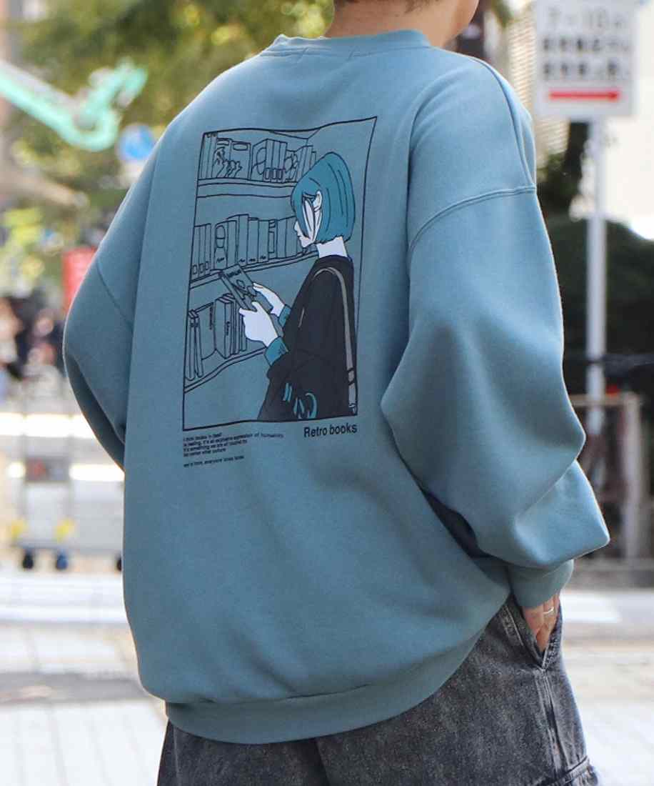 ILL'S イラストバックプリント ワンポイント刺繍 ビッグシルエット プルオーバースウェット