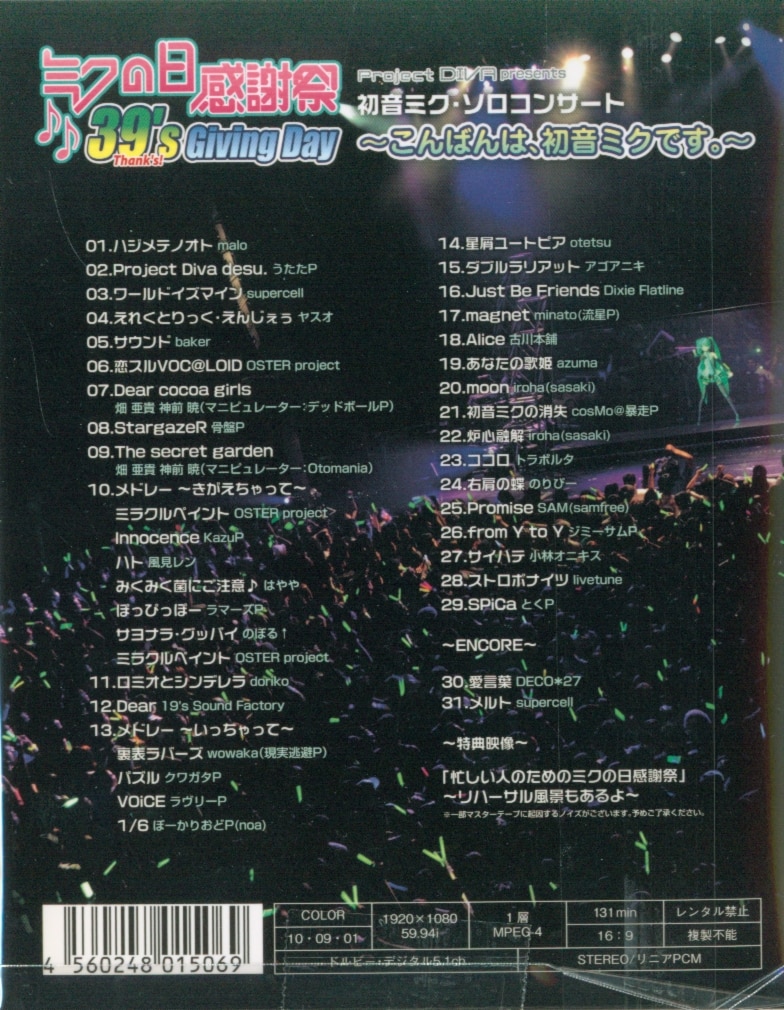ライブ/イベントBlu-ray 通常)ミクの日感謝祭 39's Giving Day ~こんばんは、初音ミクです。~