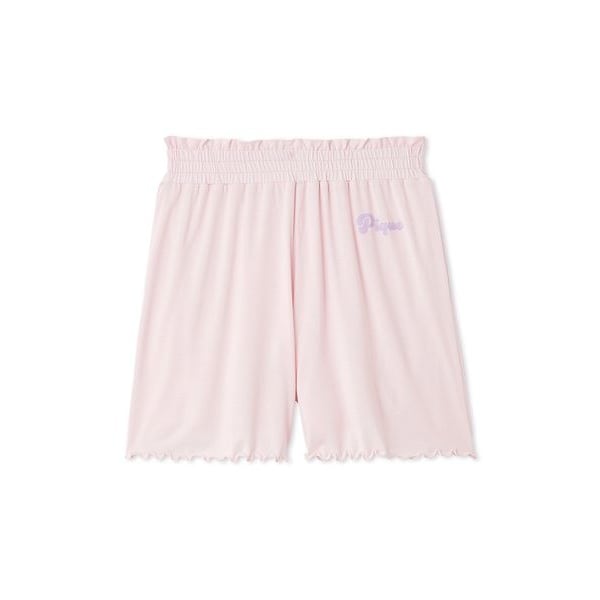 爽やかな配色のロゴデザインが、毎日HAPPYな気分を演出してくれる気軽なカットソーシリーズです。肌に触れるとひんやりとした冷感が得られる、、接触冷感のレーヨン素材を使用したショートパンツ。左腰にロゴプリントを入れ、裾にはメローデザインを配してキュートな表情もプラスしました。シャーリングウエストのさらりと柔らかいはき心地です。色はオフホワイトとピンク、ブルー、ミントの4色展開。同シリーズのTシャツや半袖の開襟シャツ、小物などと組み合わせて、ギフトにもおすすめです。
