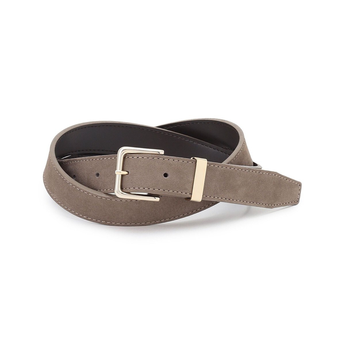 実用性が高く、上品見えするフェザーデザインのベルトです。豊富な素材バリエーションで、何本でも持っておきたいデザインです。カジュアルなボトムと相性の良いヌバック素材を使用したベージュ(#033)、ベーシックで万能なスムースレザーを使用したブラック(#005)、高級感があり、スタイリングのアクセントになるクロコ型押しレザーのダークブラウンミックス(#035)、ブラックミックス(#905)の4色展開です。
