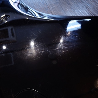 ボディーに使用に伴う線傷や軽い打痕、背面にバックル傷がございますが特に演奏に支障はございません。