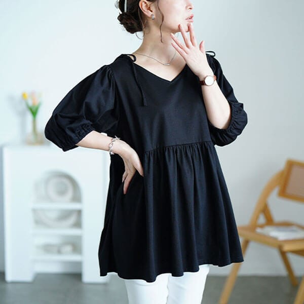 984 RNA 刺繍 ロゴ 七分丈 カットソー Tシャツ 黒 ブラックカットソー 長袖 チュニック ブラウス ブラック 黒