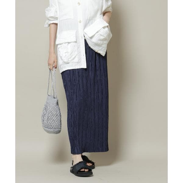 程良い光沢感と繊細なランダムプリーツが、大人のカジュアルスタイルにぴったりなナロースカート。ヒップ周りのサイズに拘り体のラインを拾いにくいデザインに仕上げているので、スッキリと着こなせるのも魅力です。