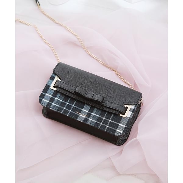 ◇Samantha Thavasa(サマンサタバサ)のチェック柄エムシュシュ ショルダーバッグ 大サイズ大人気のエムシュシュが形を変えて新しいオリジナルチェック柄で再々登場。【デザイン】エレガントな雰囲気はそのままに、新しいシェイプにアップデート。さりげないリボンモチーフで甘さを取り入れて、上品な印象に仕上げています。オリジナルのチェック柄はラメ糸を織り込んだ国産の生地に転写プリントで仕上げました。角度によってキラキラと輝くのがポイント。小さいながらも存在感がありコーディネートのワンポイントとしてお持ち頂けます。【素材】ポリエステルと大きめのシボが特徴のレザーを使用してます。【サイズ感】長財布…〇、500mlボトル…×<商品のお取り扱いについて>この商品は特殊なプリント加工を施しています。摩擦や高温多湿の環境や他の素材と密着した状態での保管はプリントの移染の原因となります。プリント加工の特性とご理解した上でお取り扱いをお願いいたします。