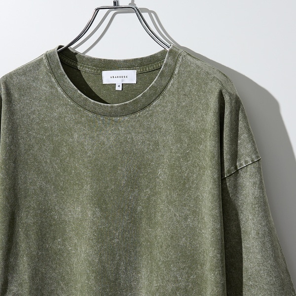 製品染めによる加工感を加え色落ちしたような雰囲気を表現。