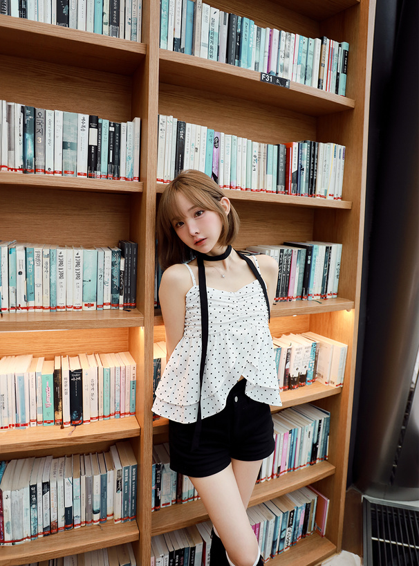 ギャザーをたっぷりと入れた立体感のあるドット柄のキャミソールが登場。