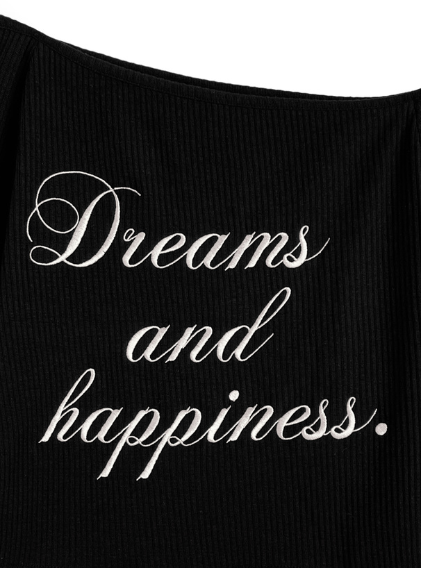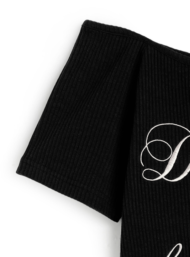 マットな質感のテレコリブ素材に大胆な刺繍を施したデザイントップス。