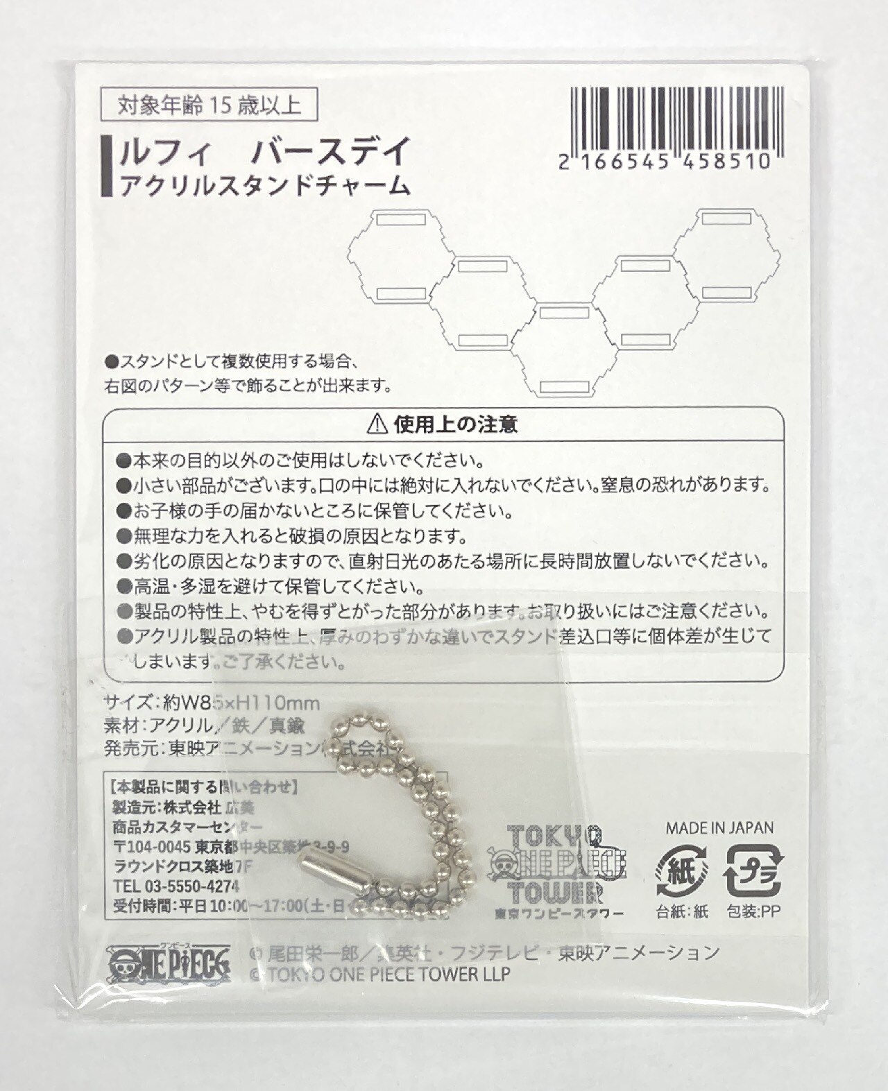 東映アニメーション アニメ20周年/アクリルスタンドチャーム 東京ワンピースタワー ルフィ