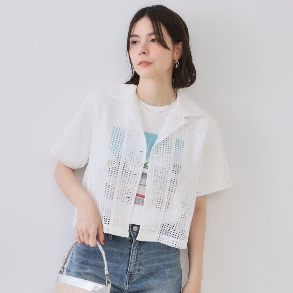 ・クラフト感もあるメッシュ素材を開襟シャツに仕上げました。