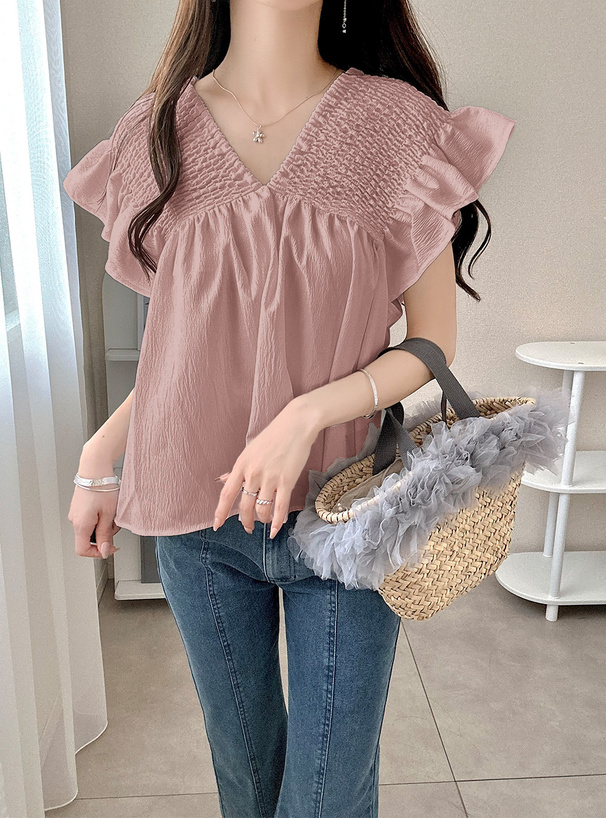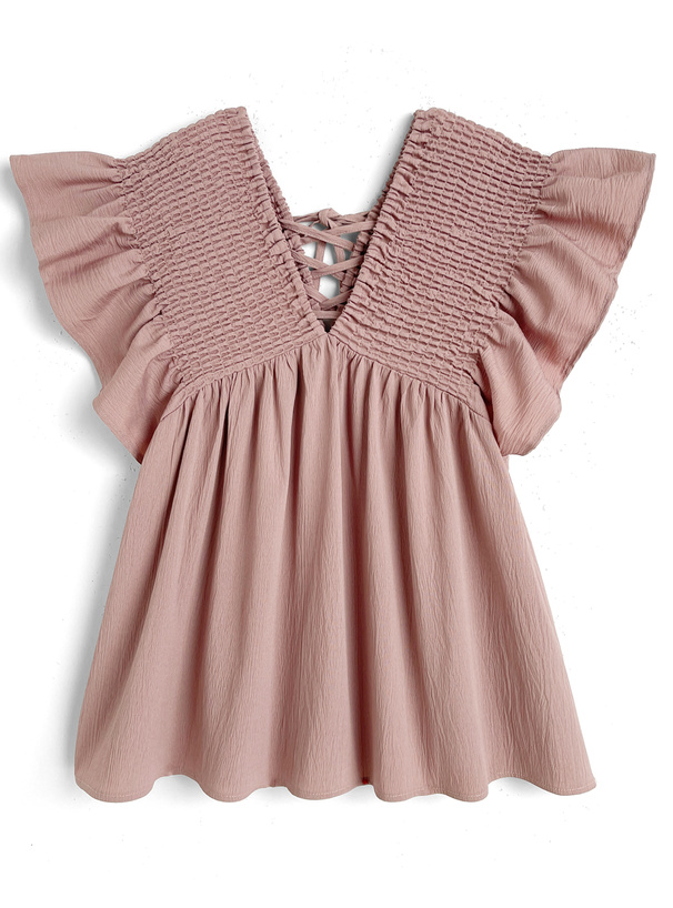 前後2wayシャーリングレースアップフリルブラウス[al299] ピンク